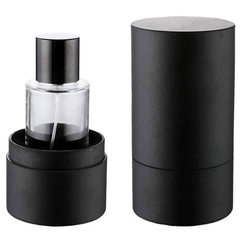 Round Glass Perfume Bottle 50ml with Black Gift Box and Metal Cap
